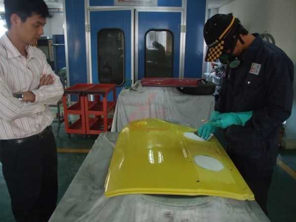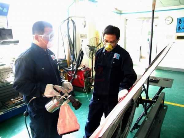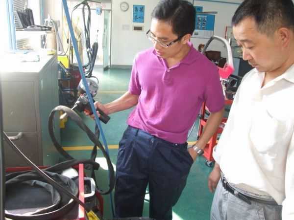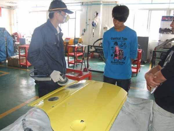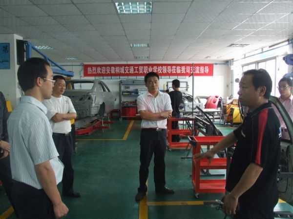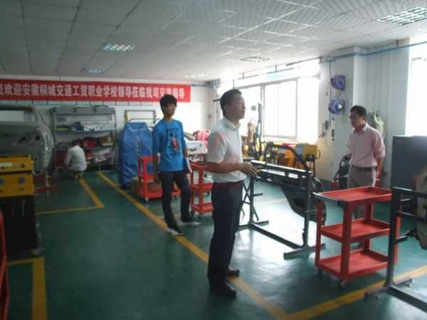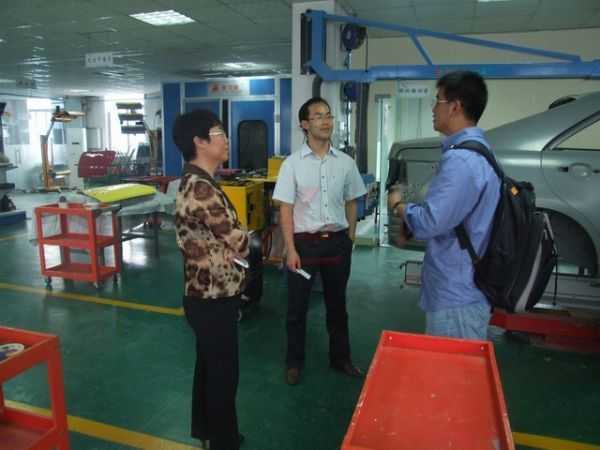 交流鈑金修復(fù)方法 我司彭經(jīng)理,張老師和安徽桐城交通工貿(mào)職業(yè)學(xué)校老師交流