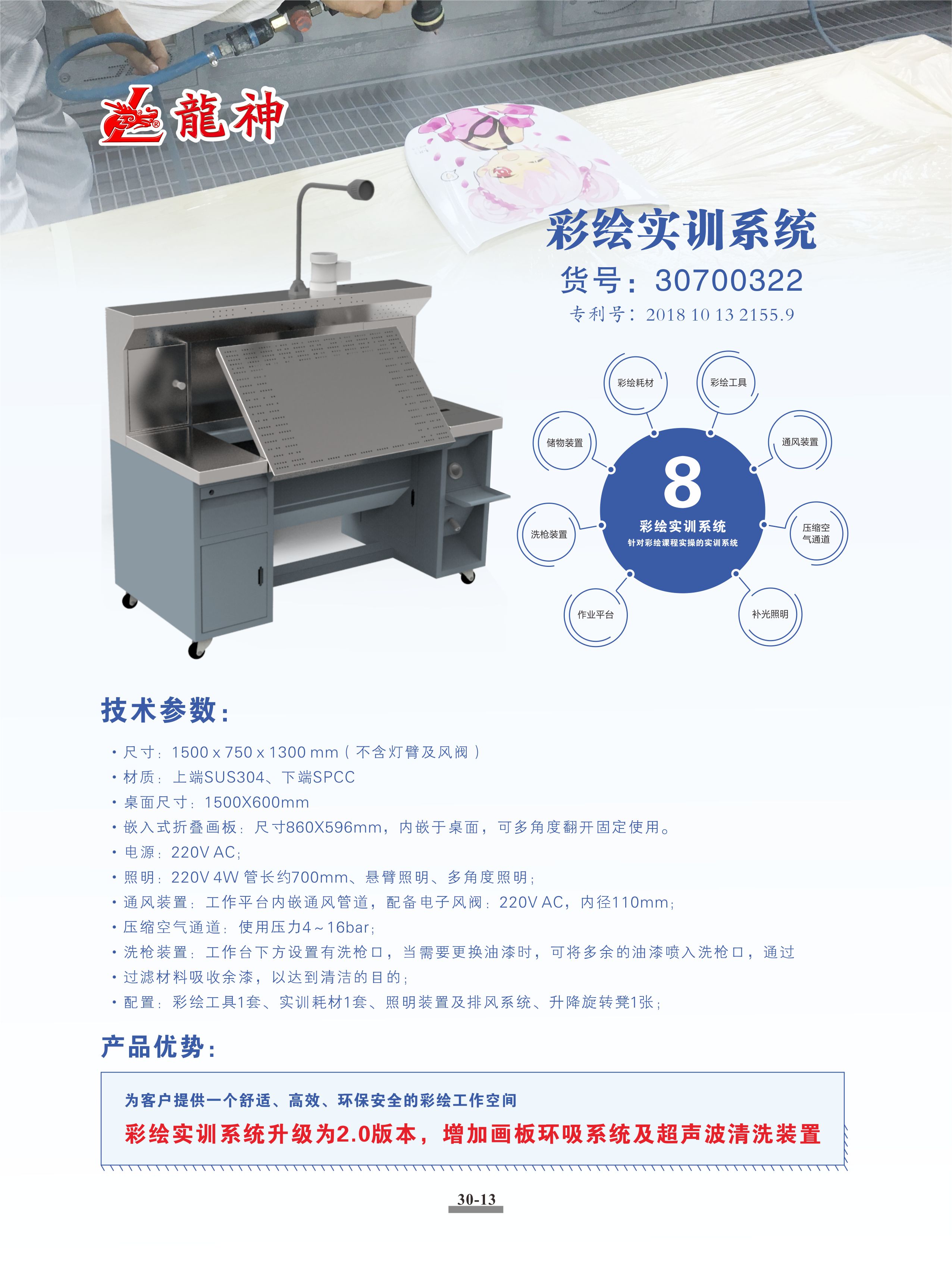 彩繪實(shí)訓(xùn)系統(tǒng)是綜合了彩繪工具、彩繪耗材、儲(chǔ)物裝置、洗槍裝置、作業(yè)平臺(tái)、補(bǔ)光照明、壓縮空氣通道及通風(fēng)裝置的,針對(duì)彩繪課程實(shí)操的實(shí)訓(xùn)系統(tǒng)。為客戶提供一個(gè)舒適、高效、環(huán)保安全的彩繪工作空間。