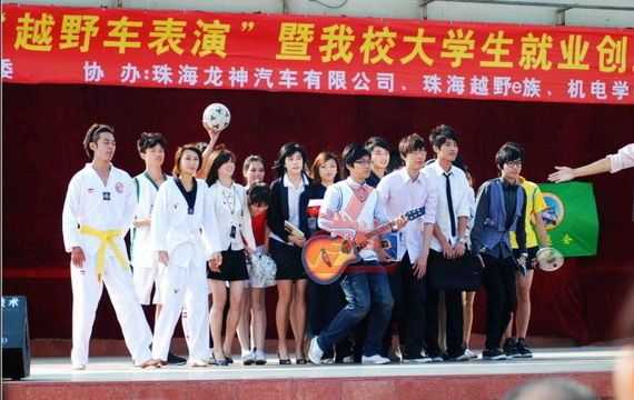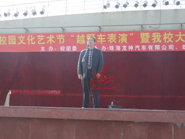 12月5日龍神公司與廣東科學(xué)技術(shù)職業(yè)學(xué)院聯(lián)合“越野e族”舉辦“第十七屆大學(xué)生文化藝術(shù)節(jié) 越野車文化交流表演暨大學(xué)生就業(yè)創(chuàng)業(yè)基地建設(shè)啟動(dòng)儀式在廣科院校園隆重召開(kāi)。此次大學(xué)生文化藝術(shù)節(jié)由廣科院校團(tuán)委主辦,龍神公司、越野e族協(xié)辦,出席此次活動(dòng)的分別來(lái)自珠海,江門(mén),中山,順德,澳門(mén)的越野e族朋友共八十多輛高級(jí)越野車參與;在緊張刺激的汽車轟鳴聲中拉開(kāi)了序幕。