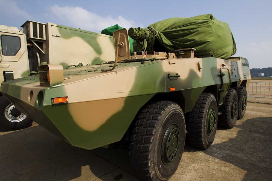 疑似使用轉(zhuǎn)管炮的新型國產(chǎn)8X8輪式裝甲車,其底盤也與解放軍現(xiàn)役的ZBD09不同,是一種新型底盤。