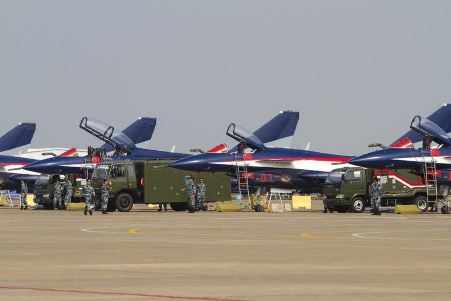 地面整備中的空軍八一飛行表演隊的殲10戰(zhàn)機。