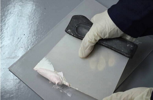 (8)將所有攪拌好的原子灰全部舀起,以方便刮涂。