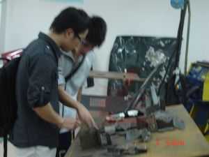 學(xué)長朱福鏢(現(xiàn)龍神實操技師)與社團成員交流實踐經(jīng)驗