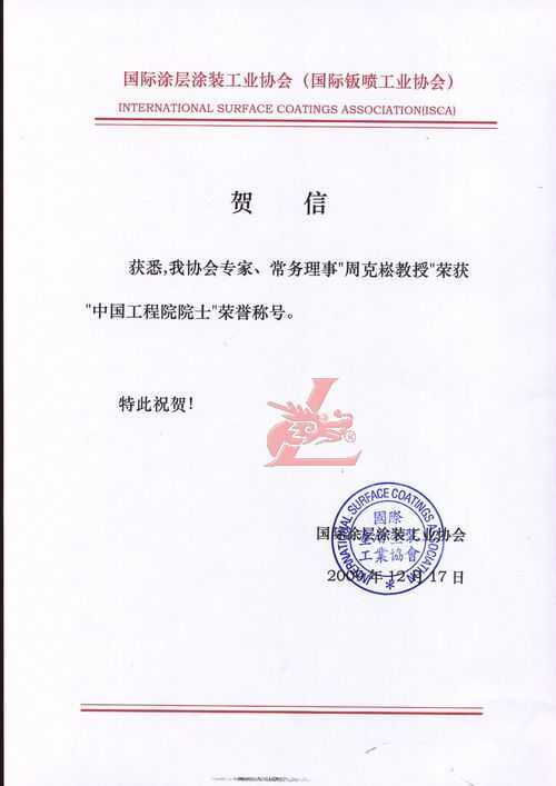 賀國(guó)際涂層涂裝工業(yè)協(xié)會(huì)專家常務(wù)理事克崧教授榮獲“中國(guó)工程院院士”[龍神秘書(shū)單位處] 賀國(guó)際涂層涂裝工業(yè)協(xié)會(huì)專家常務(wù)理事克崧教授榮獲“中國(guó)工程院院士”[龍神秘書(shū)單位處] 珠海龍神有限公司秘書(shū)處賀 2009-12-19 8942