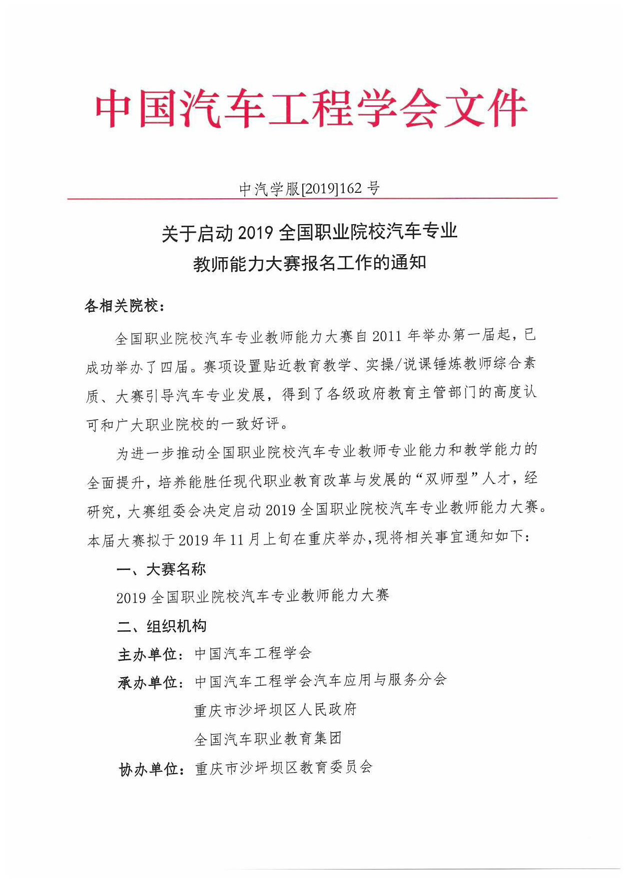 2019全國(guó)職業(yè)院校汽車(chē)專(zhuān)業(yè)教師能力大賽-鈑金賽項(xiàng)報(bào)名進(jìn)行時(shí) 2019-09-12 7029 由中國(guó)汽車(chē)工程學(xué)會(huì)主辦,中國(guó)汽車(chē)工程學(xué)會(huì)汽車(chē)應(yīng)用與服務(wù)分會(huì)、重慶市沙坪壩區(qū)人民政府、全國(guó)汽車(chē)職業(yè)教育集團(tuán)承辦,珠海市龍神有限公司協(xié)辦的“2019年全國(guó)職業(yè)院校汽車(chē)專(zhuān)業(yè)教師能力大賽--鈑金維修賽項(xiàng)”報(bào)名工作開(kāi)始了。。。