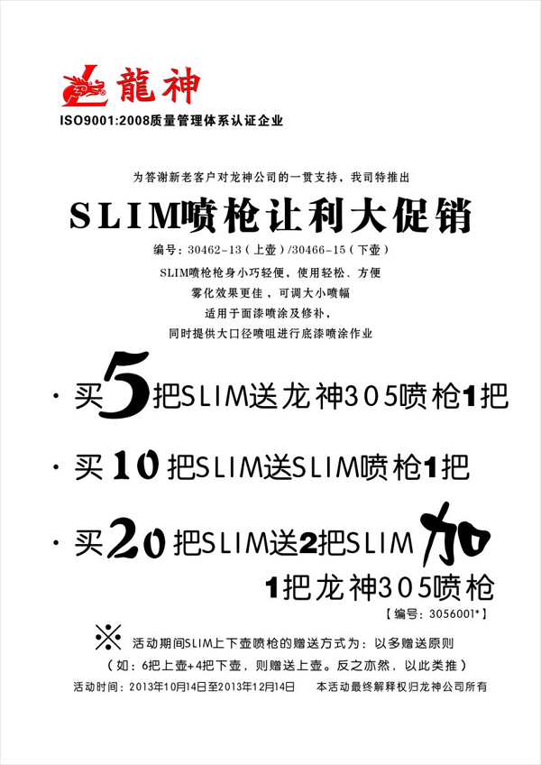 SLIM噴槍2013年10月至12月份促銷(xiāo)方案