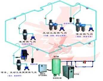 管道不生銹,不產(chǎn)生異味或有害氣體,外觀天藍(lán)色。 3)合理設(shè)計(jì): 整個(gè)壓縮空氣主管路設(shè)計(jì)成全封閉環(huán)形,以保證各供氣點(diǎn)氣壓的均衡。并對(duì)主管路實(shí)行分區(qū) 分段控制 ,可在不停產(chǎn)的情況下進(jìn)行檢測(cè)及維護(hù)工作。