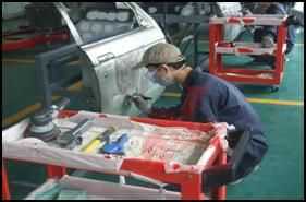 工具設(shè)備:車身校正儀、車身電子測(cè)量系統(tǒng) 耗材及勞保:棉手套、工作服、防塵眼鏡