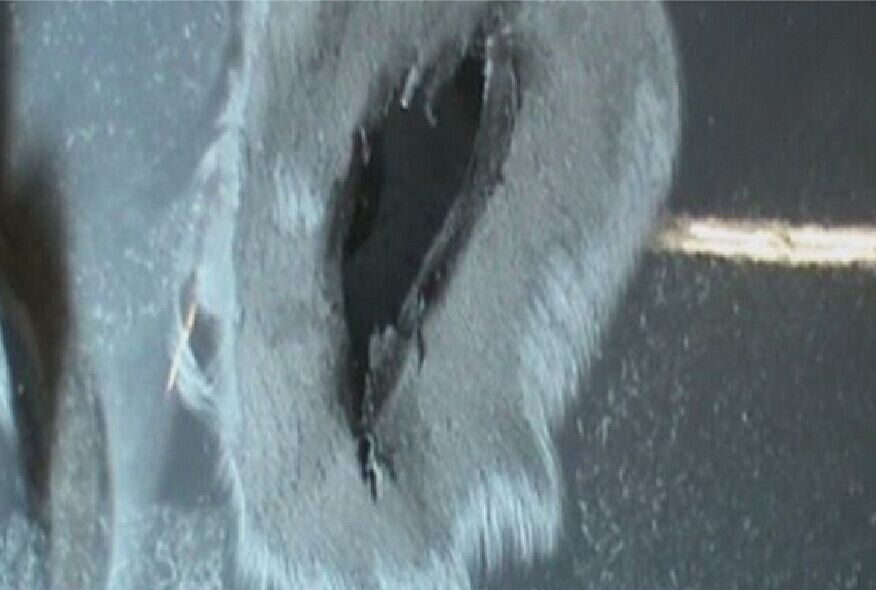 步驟1:當(dāng)塑料件出現(xiàn)穿孔時(shí),首先使用磨頭打磨掉洞孔周?chē)拿?,如圖1-1所示。