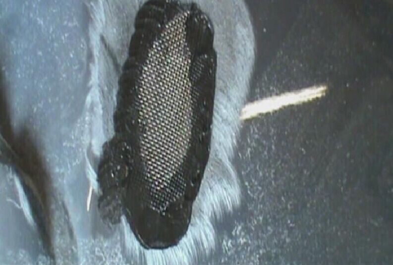步驟5:用剪刀壓住無(wú)銹加固網(wǎng),然后用專(zhuān)用烙鐵從加固網(wǎng)的邊緣開(kāi)始進(jìn)行熔植,如圖1-5所示。