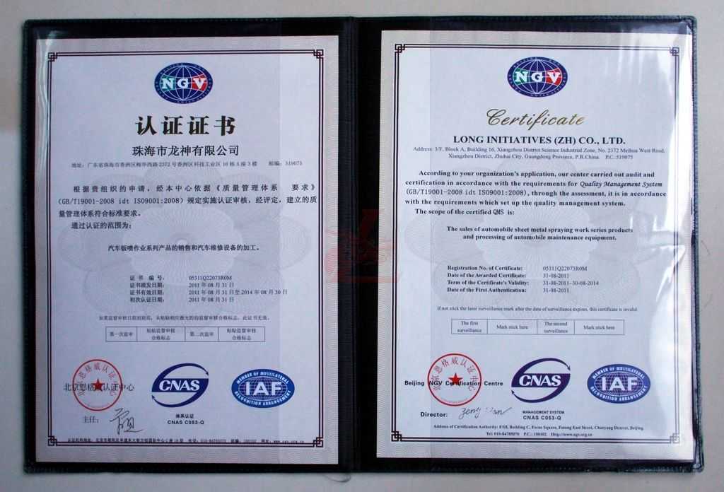 我司通過ISO9001:2008質量管理體系認證 2011年8月31日,我司通過“ISO9001:2008質量管理體系認證”并獲得認證證書! 公司各部門認真學習和貫徹執(zhí)行“ISO9001:2008國際質量標準管理體系”的各項標準,并接受了第三方機構“北京恩格威認證中心”的嚴格審核,獲得認證證書。 這標志著我司在質量管理上又上了一個新的臺階,打造更高質量的汽車鈑金噴漆系列產品。 證書封面 ISO9001:2008質量管理體系認證證書 橫幅 2011-09-08 10635