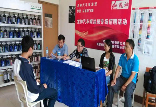珠海龍神有限公司攜手昆明松騁汽修設(shè)備有限公司與昆明市官渡區(qū)職業(yè)高級(jí)中學(xué)建立更深層次的校企合作關(guān)系,開辦龍神噴涂班?,F(xiàn)場(chǎng)選拔面試會(huì)已于2014年6月24日在昆明市官渡區(qū)職業(yè)高級(jí)中學(xué)隆重舉行!